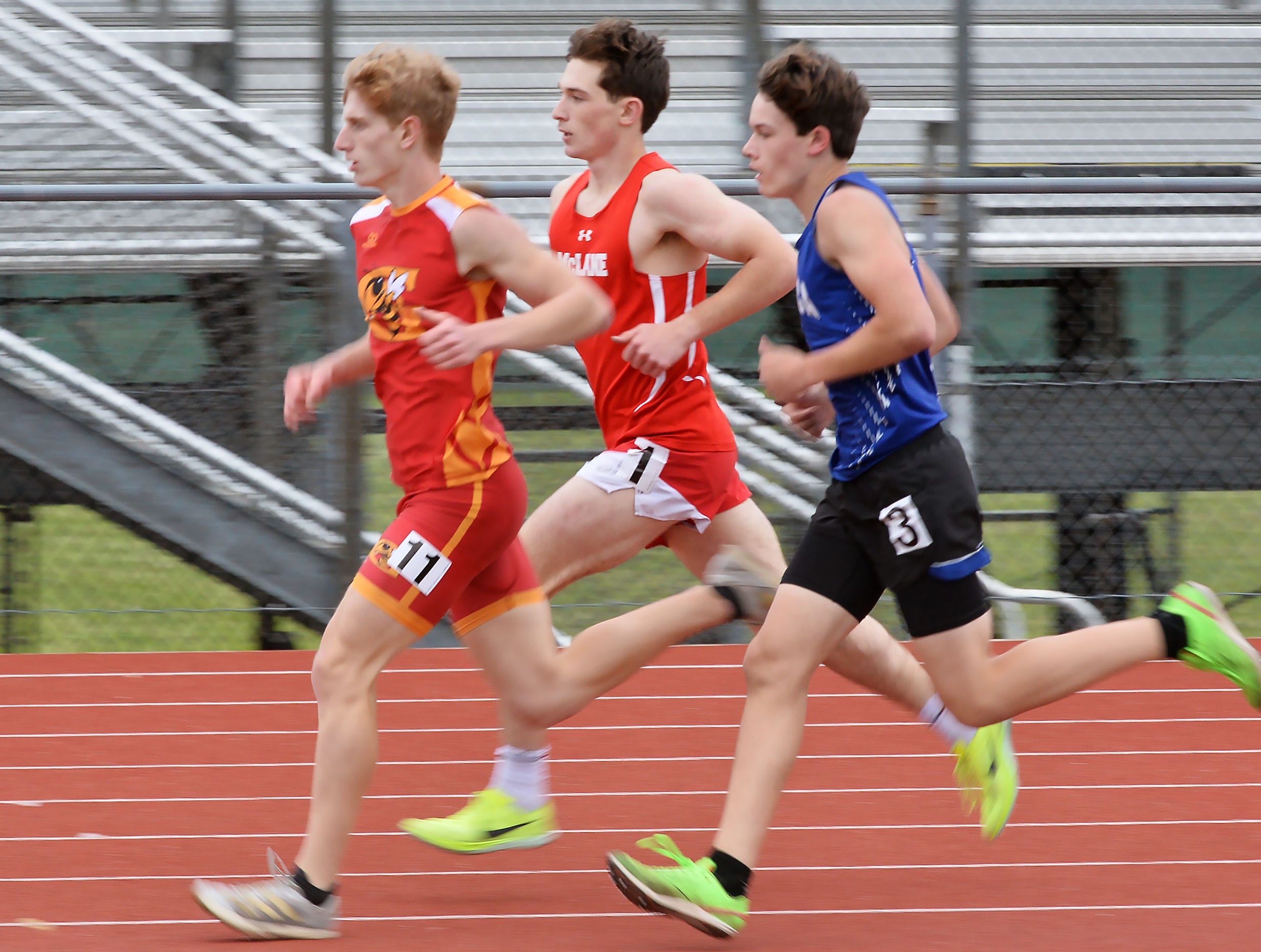 3,200-meter relay: McDowell 9:44.81; 110 hurdles: Dolak (HC) 15.82; 100 meters: D.Easter (CP) 11.34; 1,600 meters: Kramer (McD) 4:32.56; 400-meter relay: Cathedral Prep 43.59 seconds; 400 meters: Berquist (McD) 50.57 seconds; 300-meter hurdles: Dolak (HC) 39.73 seconds; 800 meters: C.Pierce (McD) 1:58.16 minutes; 200 meters: Chiprean (McD) 22.76 seconds; 3,200 meters: Kramer (McD) 9:55.13 minutes; 1,600-meter relay: Cathedral Prep 3:28.33 minutes; high jump: Mountain (CP) 5 feet 9 inches; pole vault: Harper (HC) cleared at 10 feet; long jump: G.Easter (CP) jumped 20 feet 2 inches; triple jump: Mountain (CP) achieved 41 feet 2 inches; discus throw: Lobaugh (HC) threw for 123 feet 5 inches; javelin throw: Myers (McD) reached 149 feet 8 inches; shot put: Shaughnessy (CP) recorded an effort of 41 feet 7 three-quarters inch.